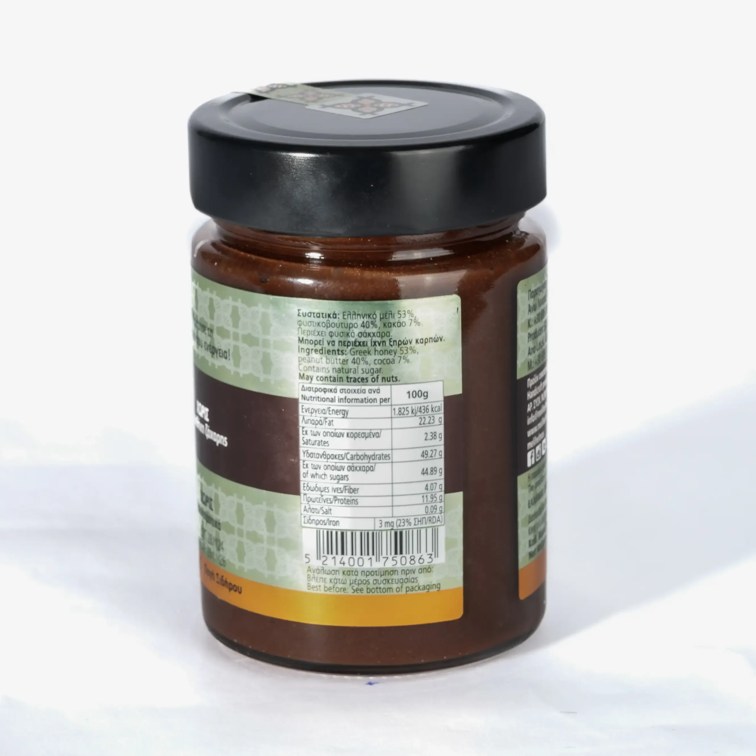 Μέλι παραγωγής μας συνδυασμένο με επιλεγμένο φυστικοβούτυρο και κακό, υψηλής ποιότητας.